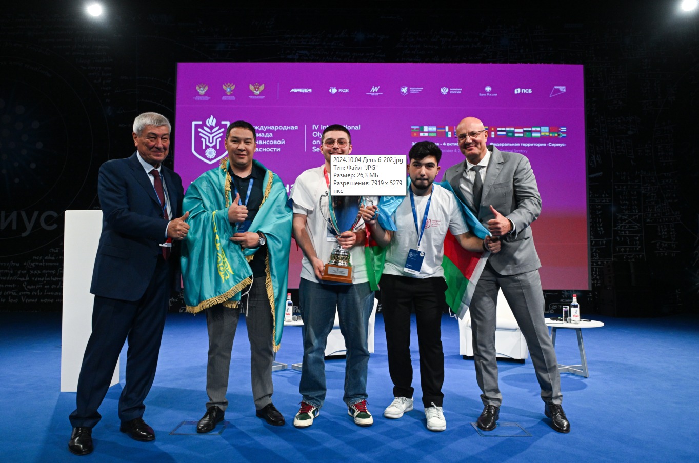Также Дмитрий Чернышенко поблагодарил организаторов олимпиады — «Росфинмониторинг» и лично директора федеральной Службы Юрия Чиханчина, «Сириус» и председателя Совета федеральной территории, руководителя образовательного центра «Сириус» Елену Шмелеву, Краснодарский край, волонтеров и российские вузы.