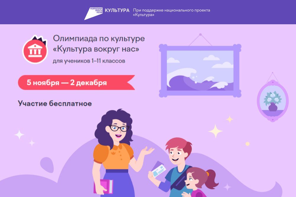 Школьники со всей России примут участие в онлайн-олимпиаде «Культура вокруг нас»С 5 ноября по 2 декабря у школьников с 1 по 11 классы будет возможность принять участие в онлайн-олимпиаде «Культура вок